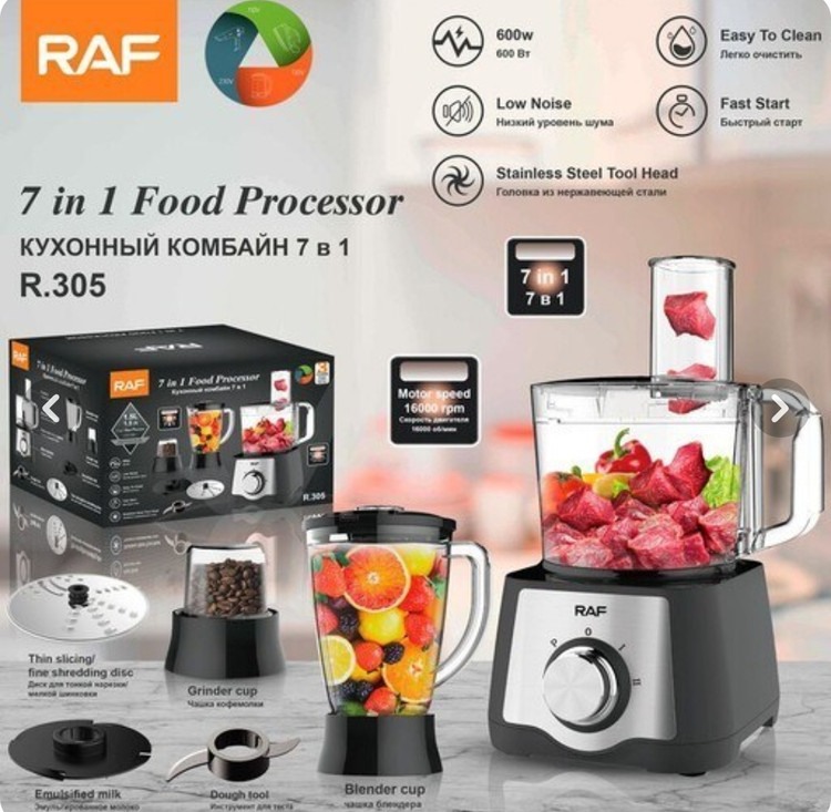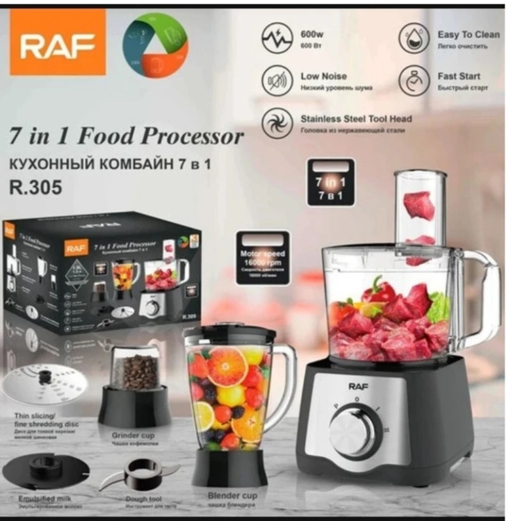 عملکرد : خردکن . مخلوطکن . آسیاب . خلال کن . همزن . سالادساز . خلال چیپس و...