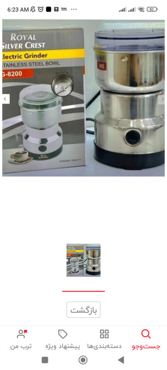 آسیاب برقی 4 تیغه مارک سیلور کرست300وات Silver Crest مدل G-8200کاسه استیل ضدزنگ برای آسیاب برنج.خشکبار.ادویه.خردکن