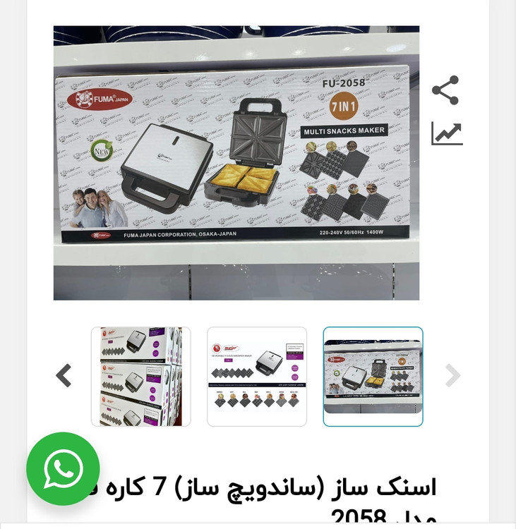قابلیت ها: اسنک ساز / گریل / وافل ساز دو مدل / کاپ کیک / دونات / گردو روسی /